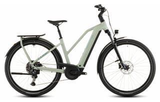 Das Cube Kathmandu Hybrid ONE 800 Trapez in pea´n´green ist ein vielseitiges und komfortables E-Trekkingbike mit tieferem Einstieg. Der kraftvolle Bosch Performance Line CX Motor mit bis zu 85 Nm Drehmoment und der integrierte 800 Wh PowerTube Akku liefern Ausdauer und Power für Alltag, Touren und Reisen. Die Efficient Comfort Geometry und die interne Kabelführung sorgen für ein stabiles, sicheres und zugleich elegantes Fahrgefühl.